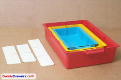 One drawer of each size and one divider